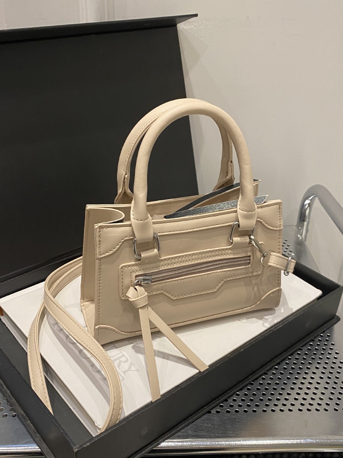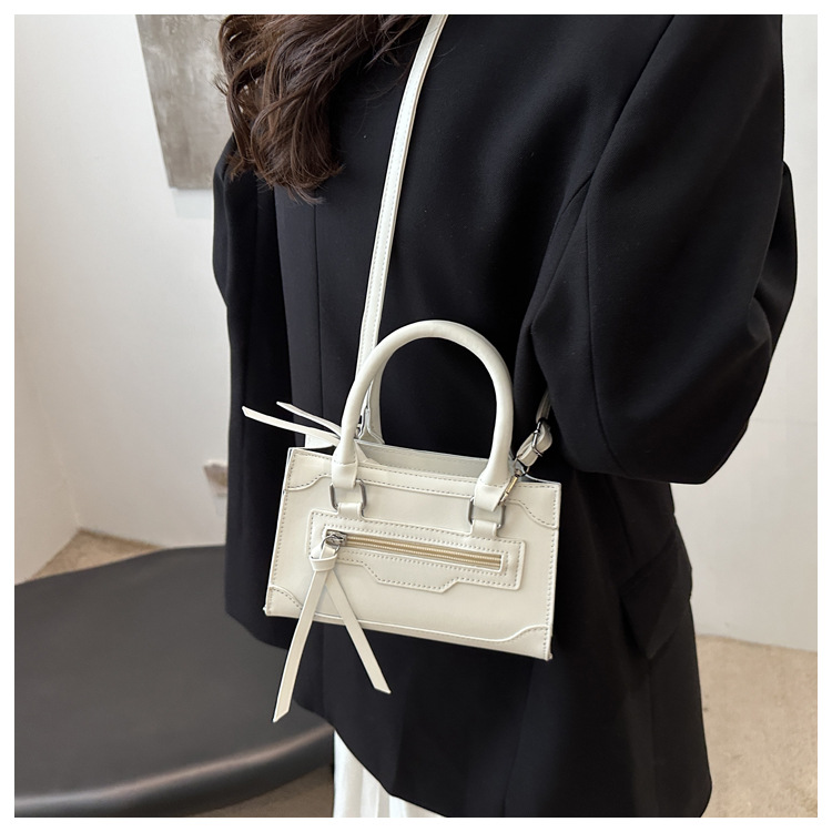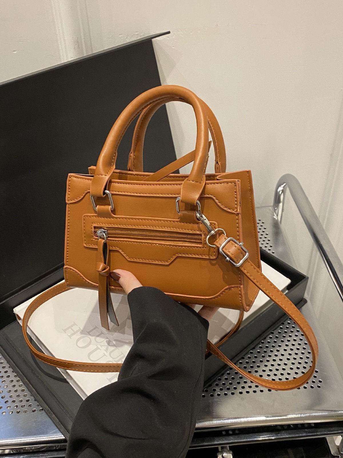 丸みを帯びた持ち手と取り外し可能なショルダーストラップで、手持ちと斜め掛けの二通りの使い方が可能です。